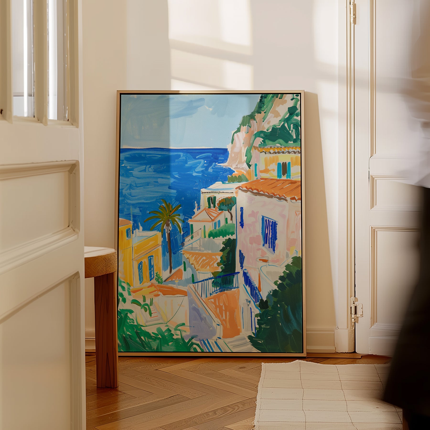 Lose yourself in the sun-drenched beauty of the Italian coast with this vibrant, Impressionistic painting. "Positano Sunscape" captures the iconic, colorful houses tumbling down the cliffs to the azure sea below. The lively scene, complete with beach umbrellas and bustling boats, is rendered with a dynamic, textured brushwork that feels both classic and contemporary. It's the perfect piece to bring the warmth and charm of a Mediterranean holiday into your home.