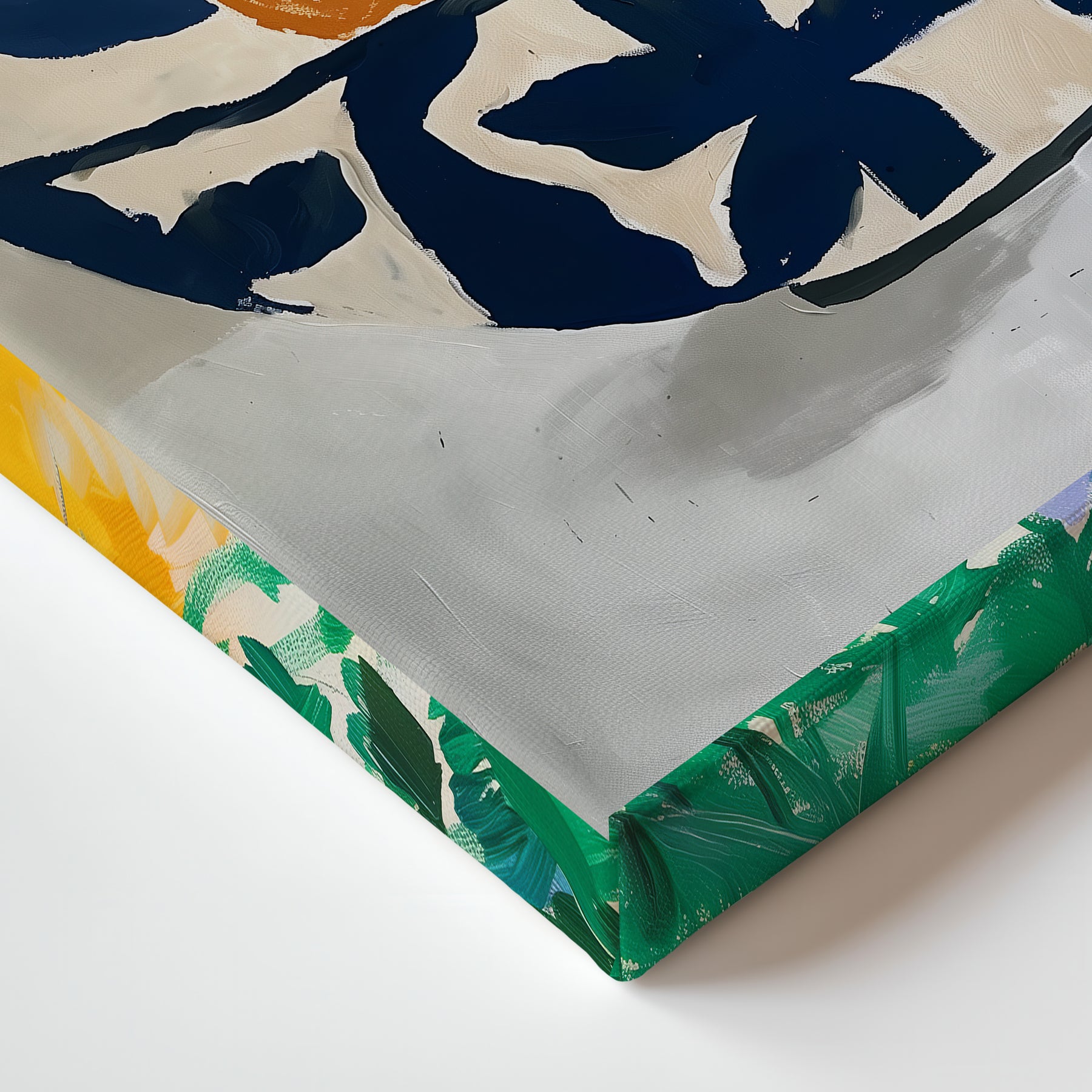 Infuse your space with a touch of eclectic, bohemian charm with "Harvest Bowl." This captivating art print features a vibrant still life of golden pears in a hand-painted blue bowl, set against a backdrop of fragmented colors and forms. The artwork's loose, painterly style and rich color palette evoke a sense of creative freedom and rustic abundance. It's an ideal piece for gallery walls, kitchens, or any space that celebrates unique finds and a layered, artistic aesthetic.