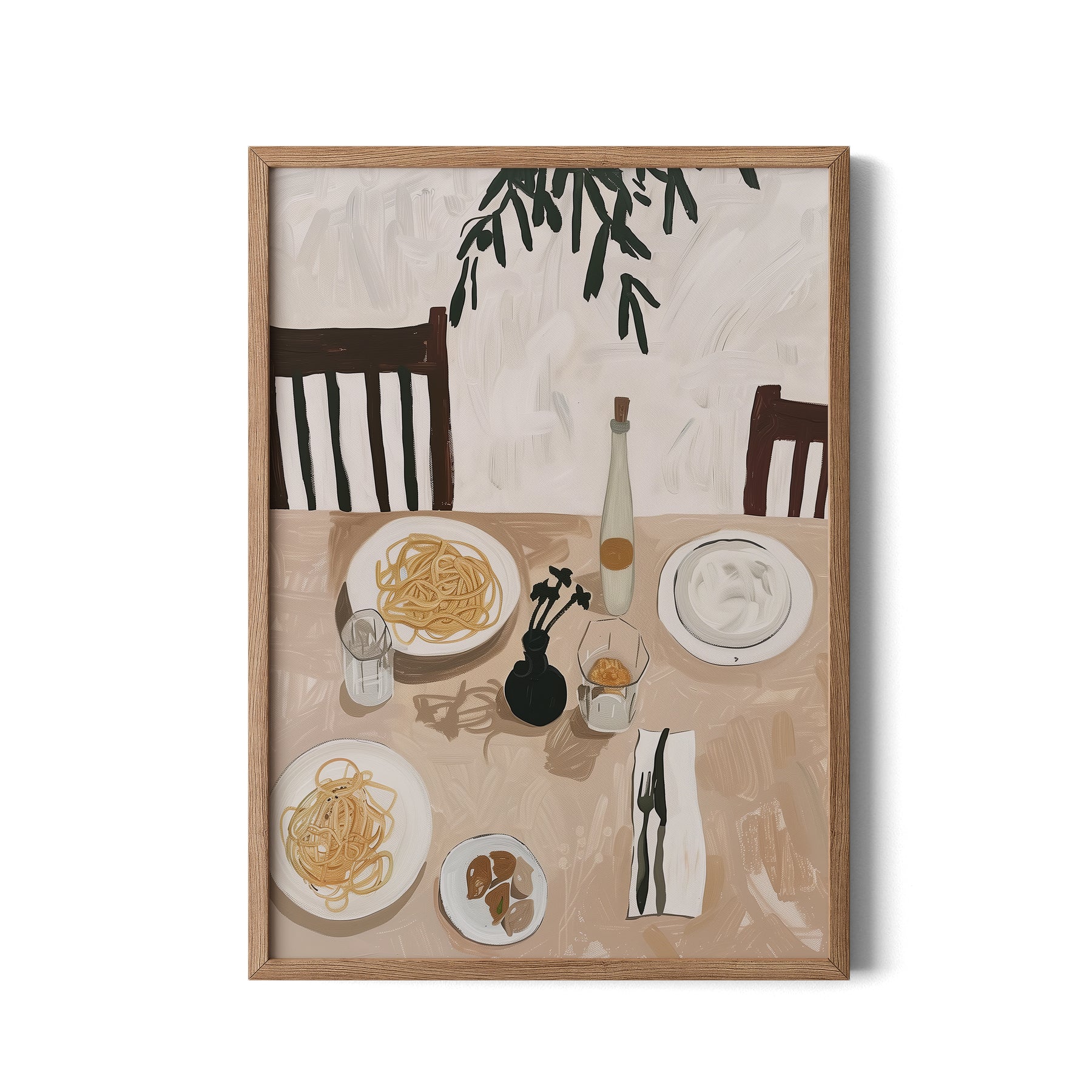 Bring this moment of simple elegance into your home. This beautiful "Pasta for Two" print is an ideal gift for foodies and art lovers.